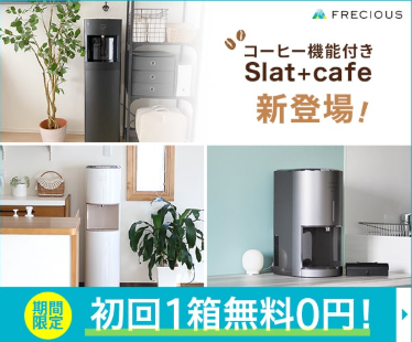 富士山の天然水を全国送料無料で届ける「フレシャス」は、機能性とデザイン性を兼ね備えたウォーターサーバー。業界唯一のグッドデザイン賞・キッズデザイン賞W受賞で、インテリアに馴染む洗練されたモデルが揃います。人気No.1の「Slat+cafe」はUCCと共同開発したコーヒー機能付きで、本格ドリップが自宅で楽しめる逸品。軽量容器で交換もラクラク、省エネ&UV-LED殺菌機能付きで衛生面も安心。赤ちゃんのいる家庭にもおすすめです。
