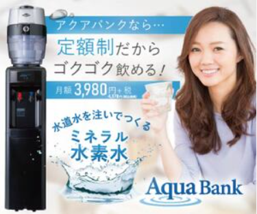 水道水を注ぐだけで、手軽に高還元力のミネラル水素水が使えるウォーターサーバー「アクアバンク」。ボトル注文不要、在庫スペースも不要で、定額制だからコストも安心。年間1,000リットル利用可能、年1回の無料メンテナンス付き。三菱マテリアルテクノ(株)のエビデンスもあり、信頼性抜群。主婦・経営者・健康志向層から支持され、3冠達成。飲料水だけでなく料理やお米とぎにも活用でき、家庭・事務所・ジム・エステ・教室など幅広くおすすめです。